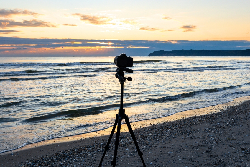 Position yourself halfway down the beach facing east. The sun rising behind the karst cliffs produces a natural frame that’s absolutely magical.
